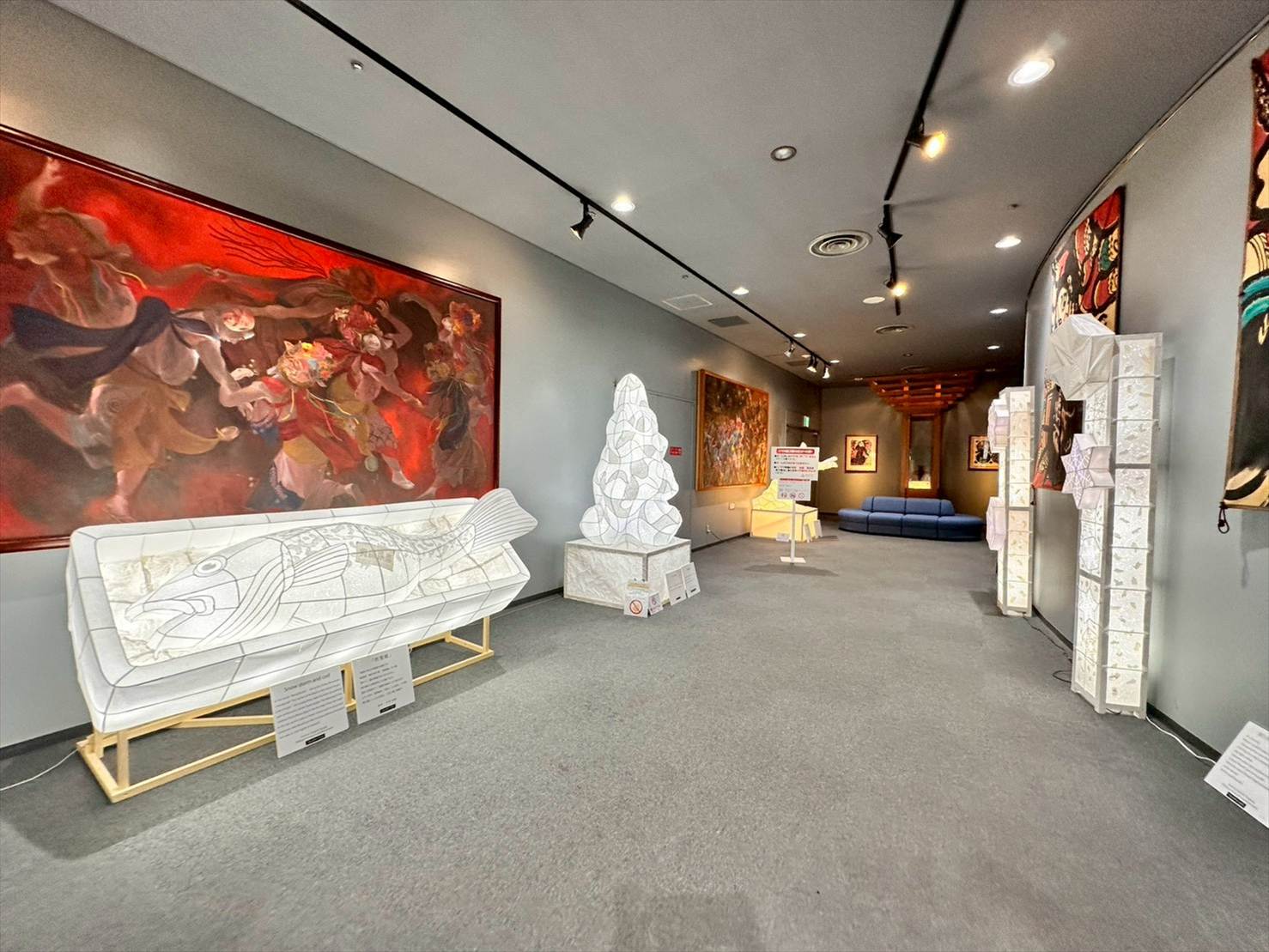 ▲早速ホールの中へと進んでいきます。ホールの入口も何やらオブジェが色々と飾られていました。