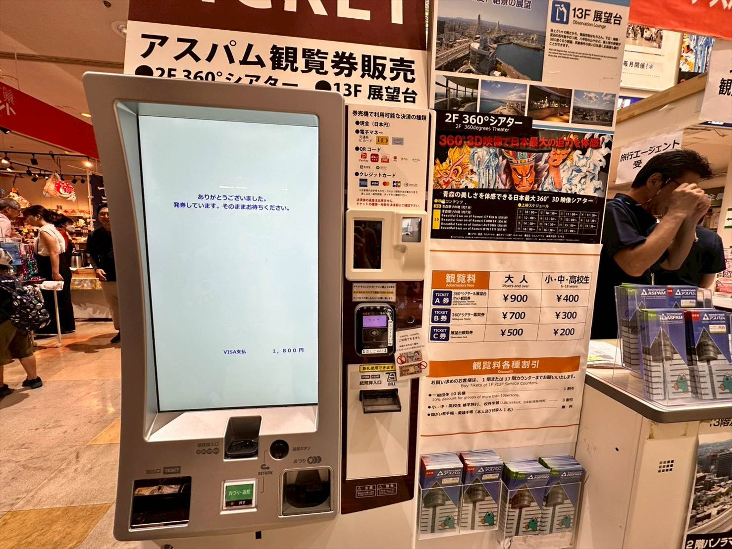 ▲観覧券は1階に券売機が用意されており、こちらで購入できるようになっていました!