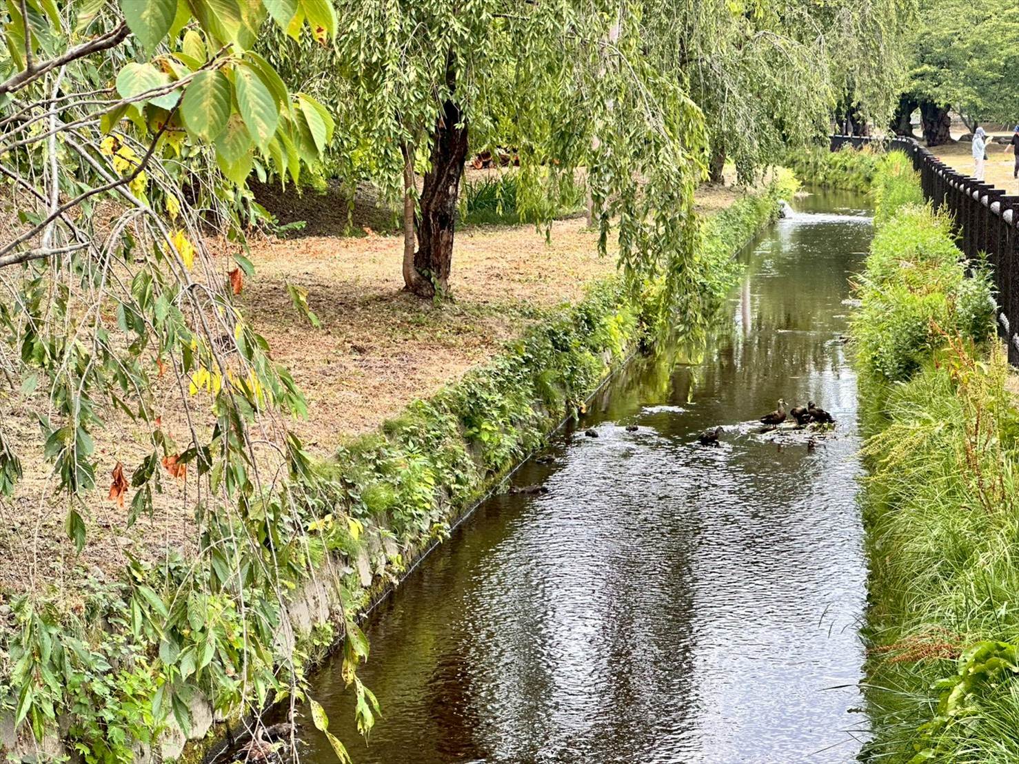▲途中見かけた水路。3~4羽くらいのカモが集まって、全力で喧嘩していました。笑