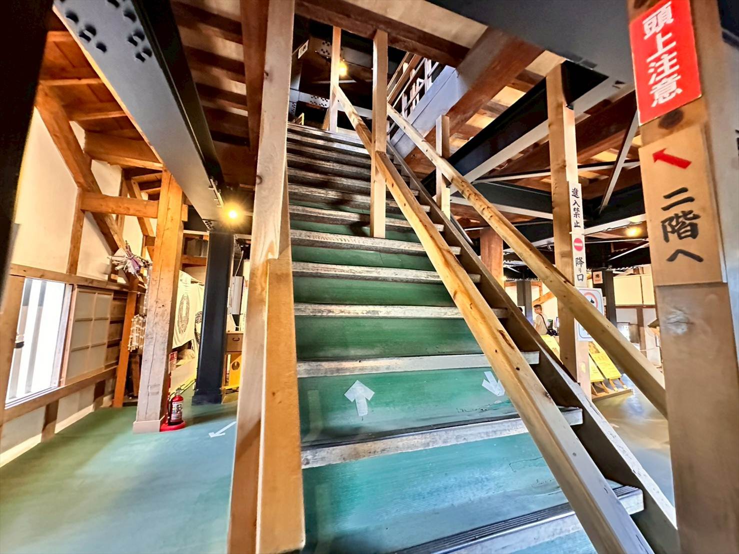 ▲かなり急でデンジャラスな階段(というよりもはや梯子)を登って、二階へと向かっていきます。
