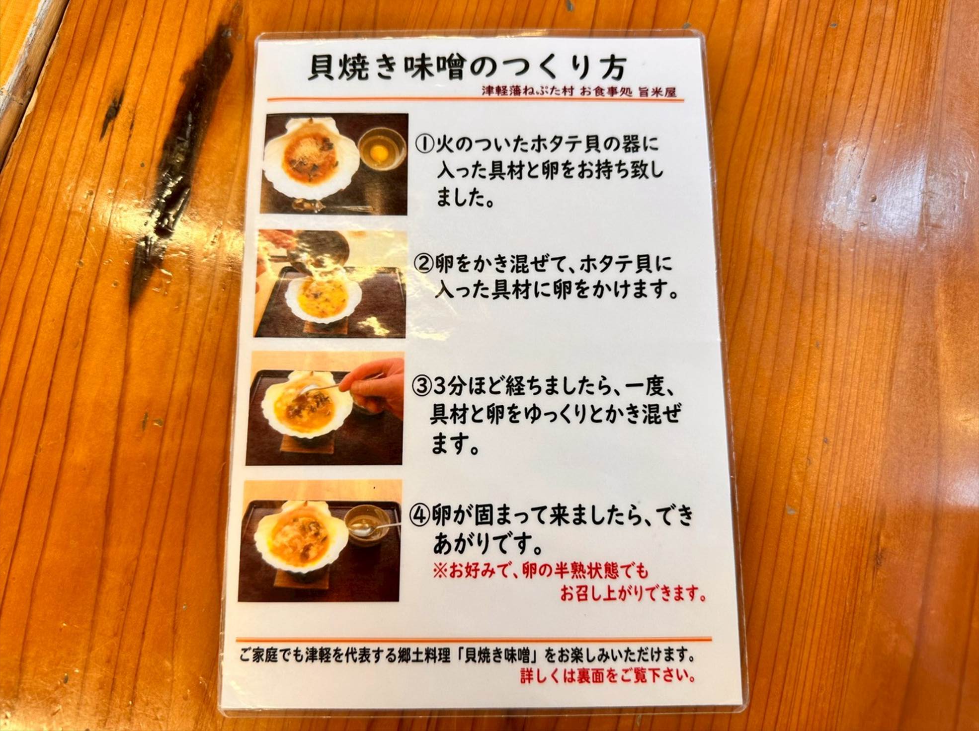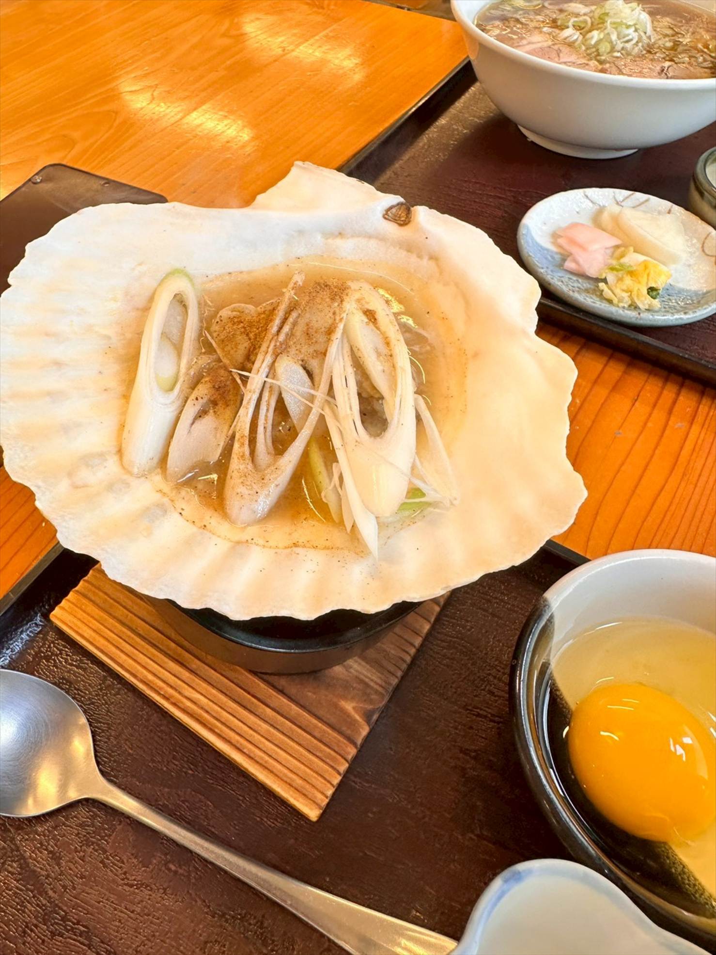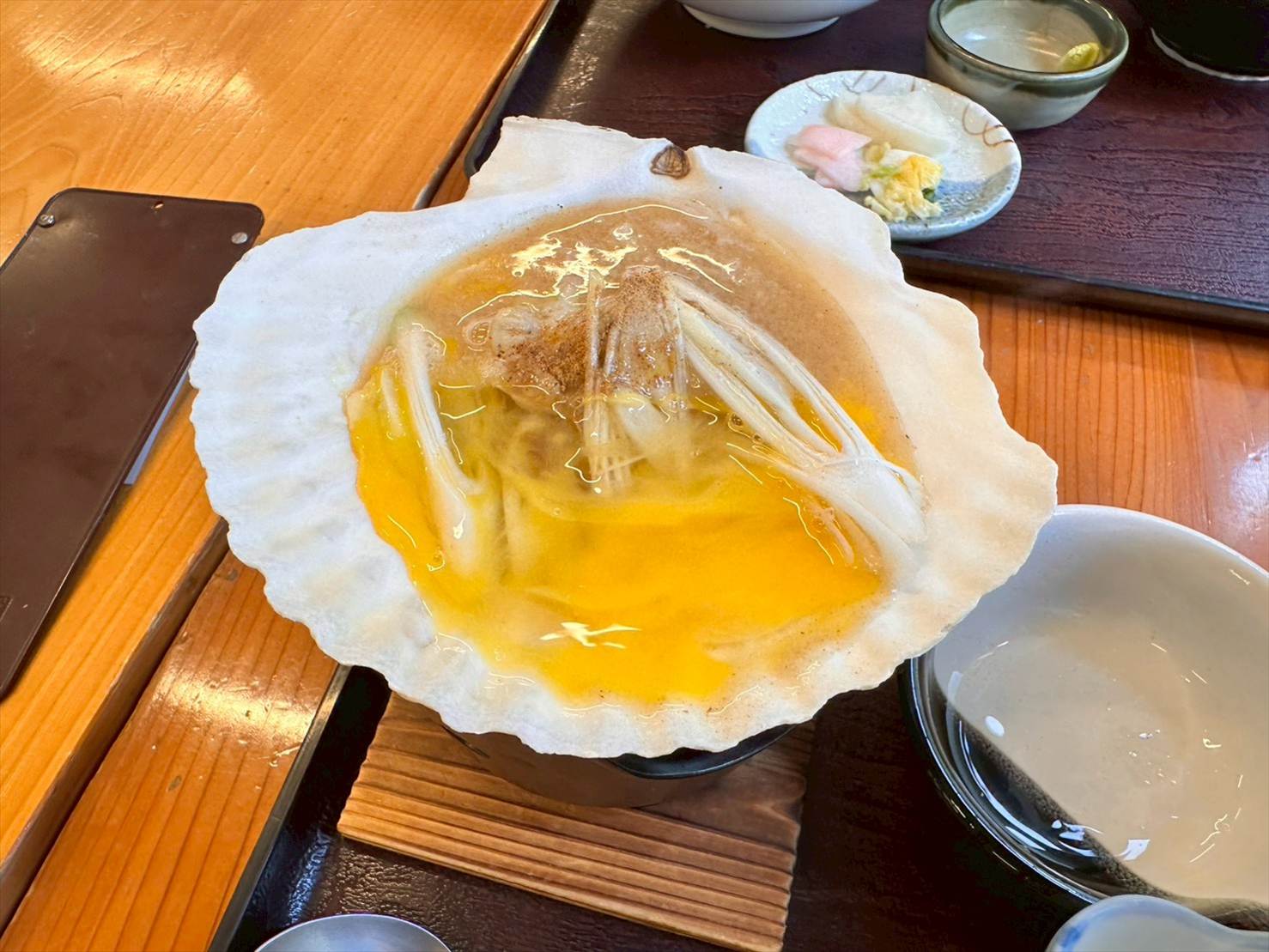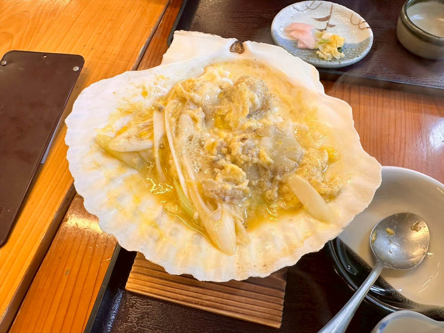 前日に「青森うまいもん居酒屋 わやわや」でいただいた貝焼き味噌は味噌の味が強めでお酒に合う味わいでしたが、こちらでいただいた貝焼き味噌は出汁の旨味が効いているタイプ!