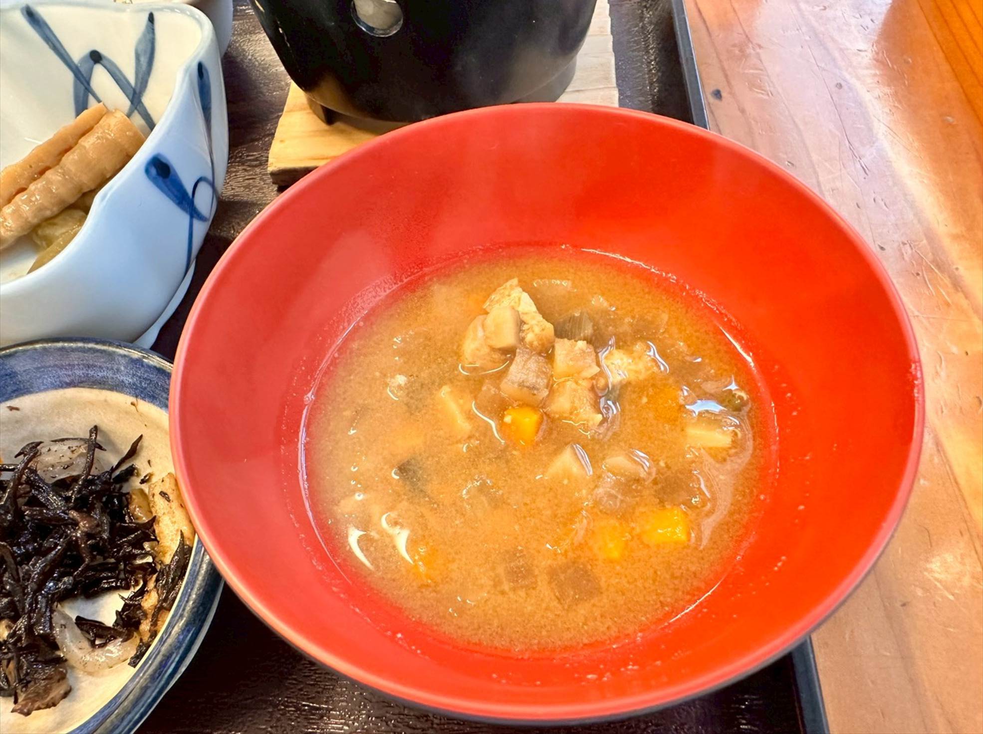 限りなく味噌汁に似ていますが、おそらく昆布だしが強めに効いているのか、しょっぱすぎず程よく体がぽかぽか温まるような優しい味わいが特徴的でしたね~!