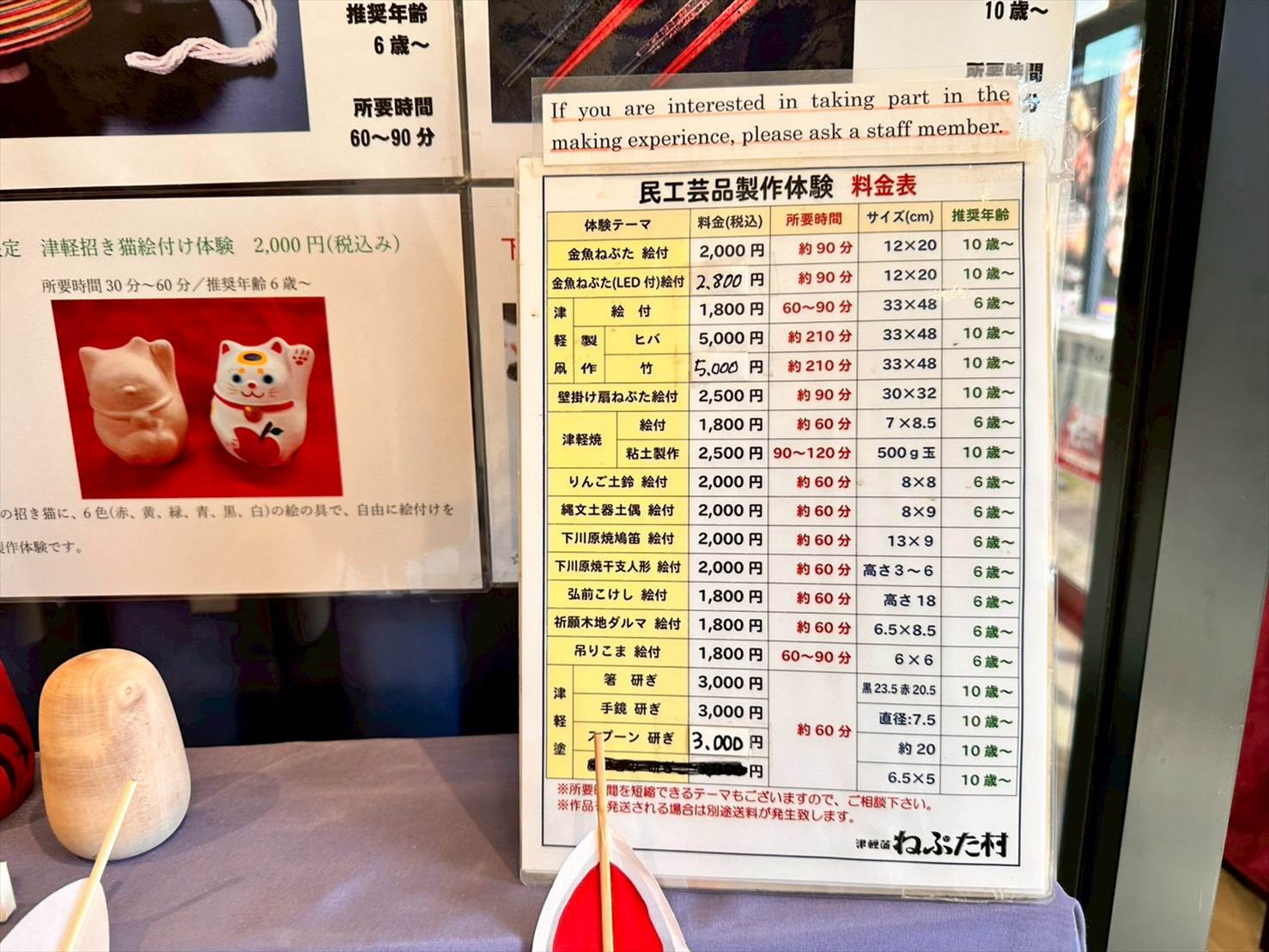他にも追加料金で津軽の民工芸制作体験を楽しめるようでした~!