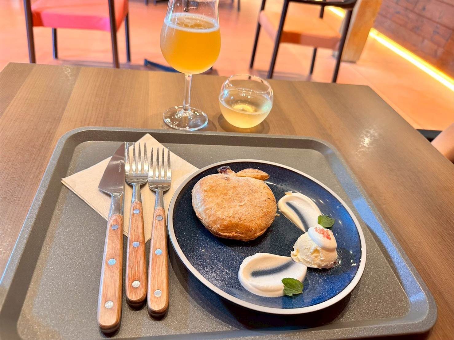 ▲そんな「cafe & shop BRICK」でオーダーしたのは、二種類のシードルとアップルパイ(900円)。