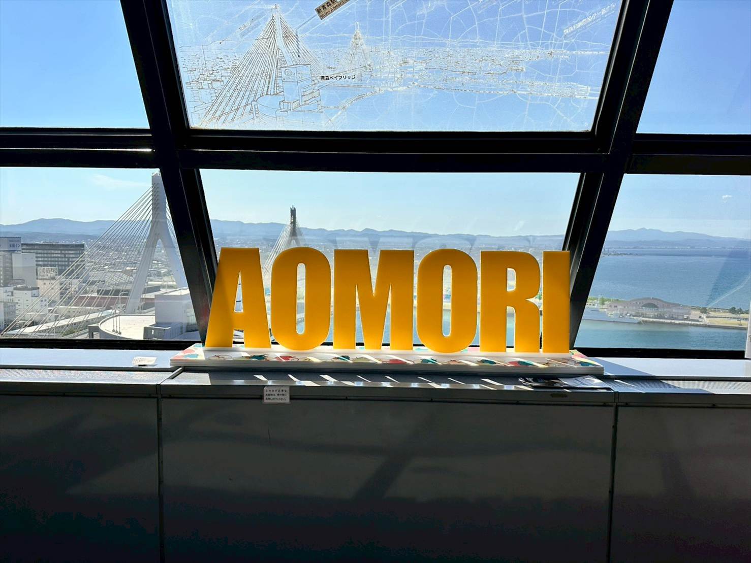▲展望台には、あおもり駅前ビーチでも見かけた”AOMORI”オブジェのミニサイズ版もありました👀