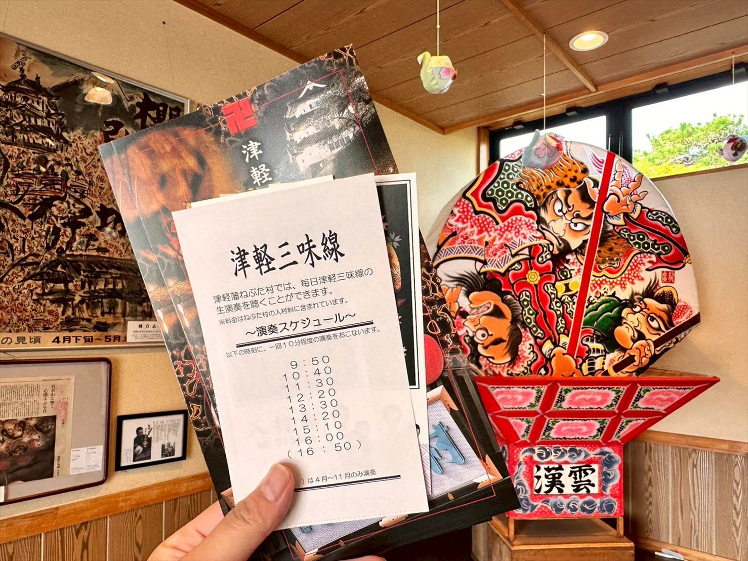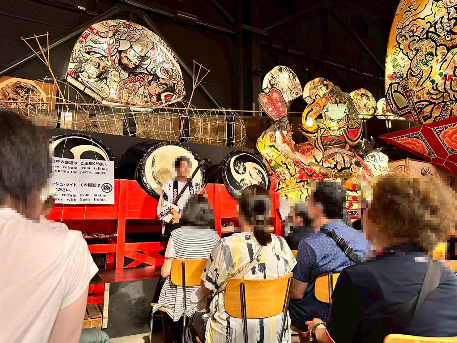 ▲そんな津軽藩ねぷた村の中では、「ねぶたの家 ワ・ラッセ」と同様、時間に応じてお囃子の演奏と三味線の生演奏を楽しめるようになっていました!