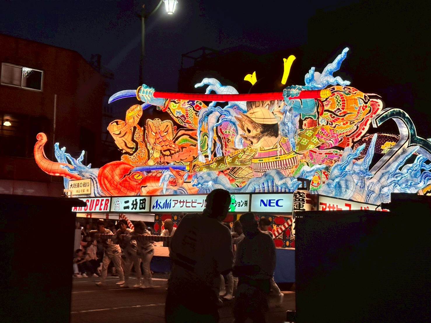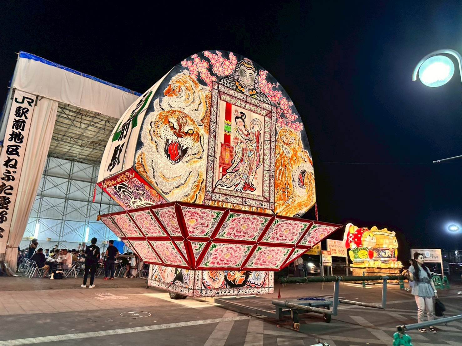 もうすでに時刻は22時ころ。駅前はすでに祭りの後の雰囲気でしたが、駅前にはまだ大型ねぷたが残されており、写真撮影を楽しむことが出来ました📷️