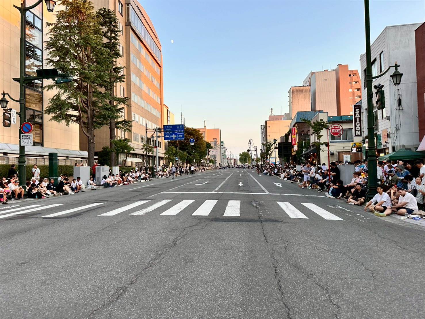 19:00頃からスタートするねぶたの運行に合わせて、観覧場所を確保します。