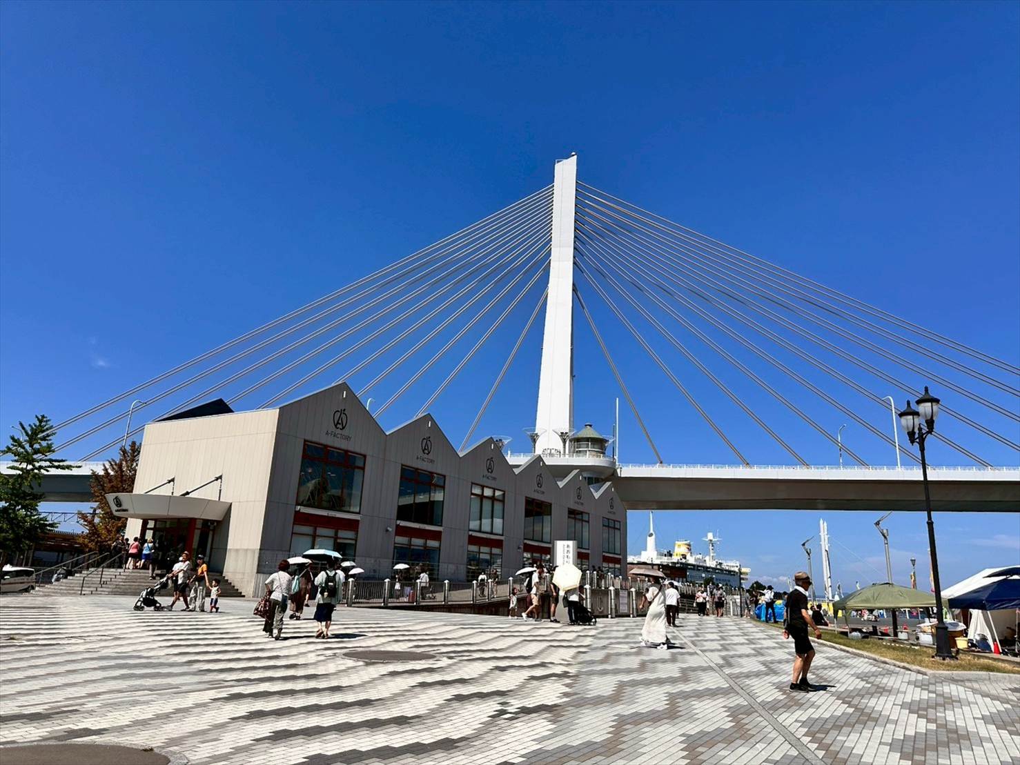 ▲「ねぶたの家 ワ・ラッセ」を後にして、すぐ目の前にある「あおもり駅前ビーチ」と、「A-FACTORY」を散策。