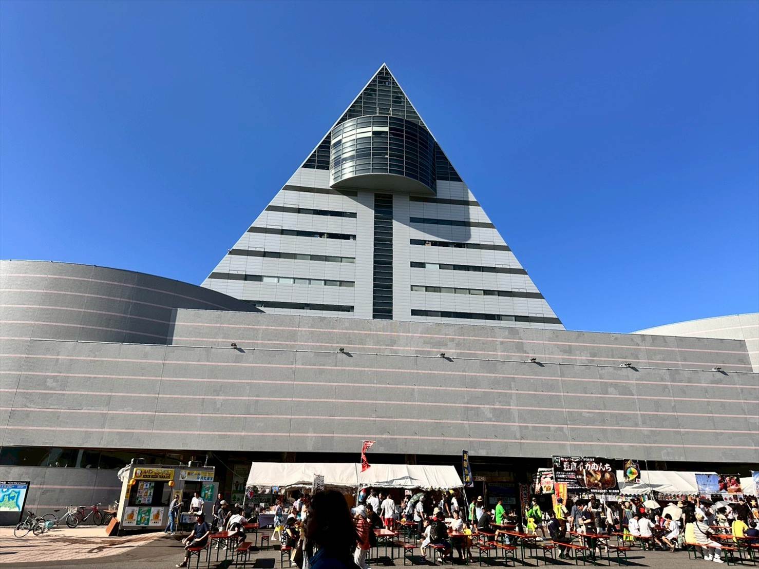 三角形の何らかの秘密結社のような外観が特徴的な建物です。