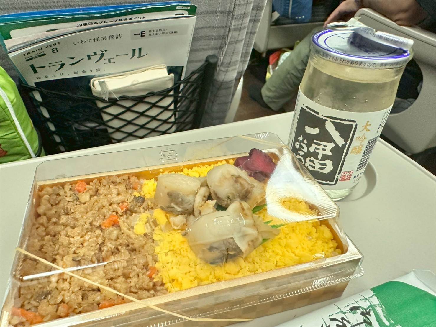 新幹線に乗り込み、購入したホタテ弁当と、ダメ押しのお酒(青森のカップ地酒)を片手に、ゆっくりと旅路を楽しみます。