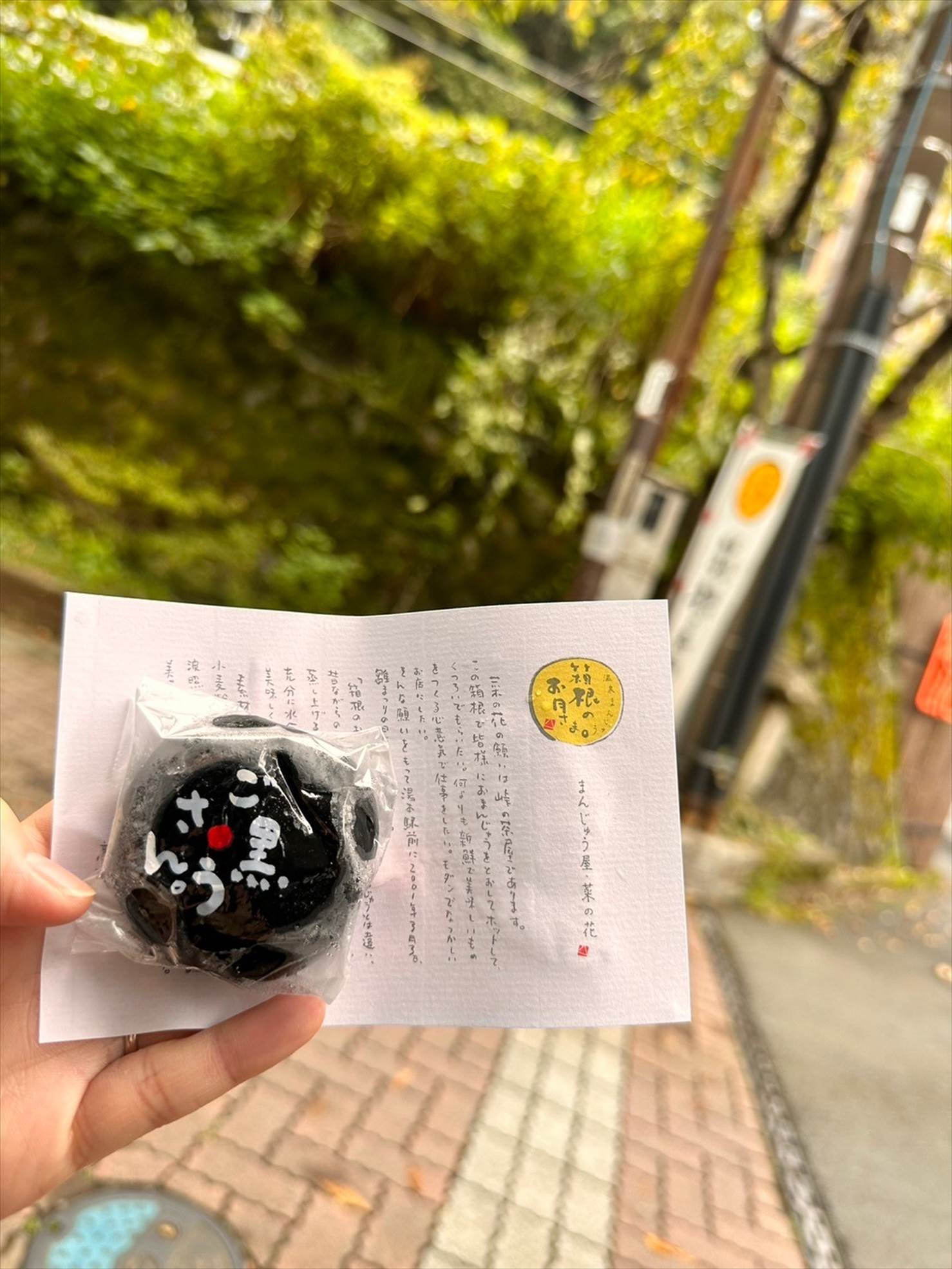 ▲さてそんな「和菓子 菜の花」の店頭では、蒸かしたての温泉まんじゅう「箱根のお月さま」と、中身がごまあんの「ご黒うさん」をそれぞれ一個120円で販売しています。