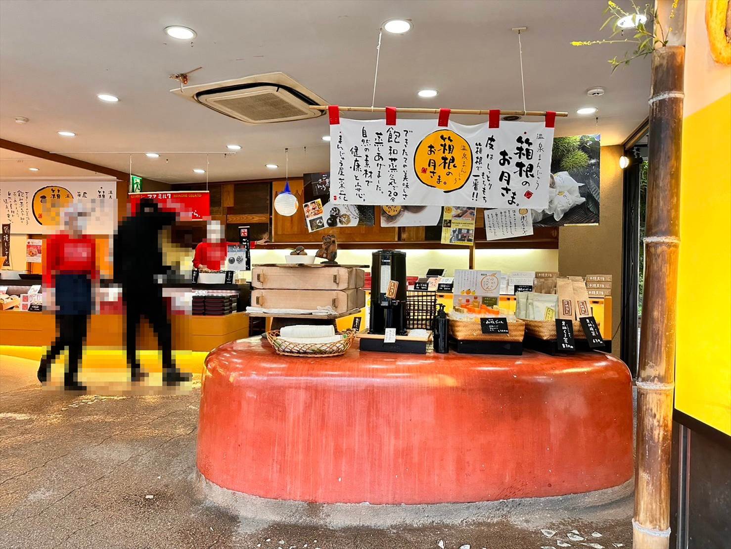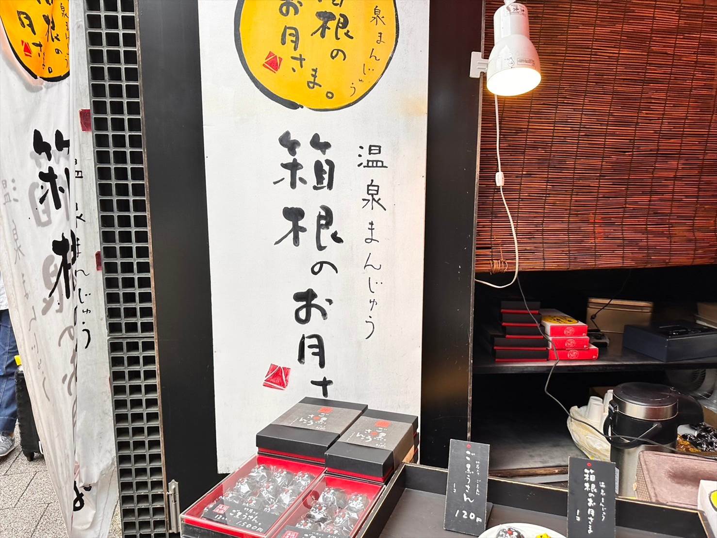 看板や幟が掲げられている「箱根のお月さま」というおまんじゅうの他、どら焼きや焼きモンブランといった美味しいスイーツを販売しています。